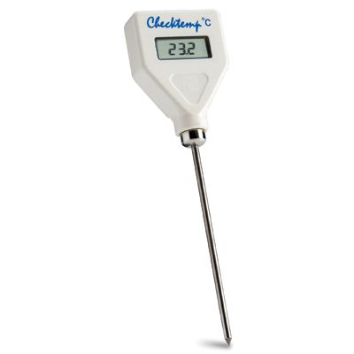 If you ever wished that your temperature measurements could be made a little easier, the Checktemp® might just be what you’re looking for! The Checktemp® offers high accuracy over a wider range without worrying about breakage or condensation. The Checktemp® offers NO breakage, NO waste, NO injuries, NO difficulty in reading; not even a parallax error by taking a wrong measurement due to the angle of view! Checktemp® is provided with HANNA’s unique CAL CHECK™ function for accurate measurements every time: simply activate a switch and the instrument will simulate an ice bath of 0.0°C (32.0°F) signal that is displayed on the LCD within a range of ±0.3°C (±0.5°F). The sharp-tip probe of the Checktemp® easily penetrates semisolid products, making routine controls simple and quick for both incoming and outgoing goods. Checktemp® is the ideal instrument for measuring temperature according to HACCP requirements. Models with factory calibration certificate against NIST standards are also available.