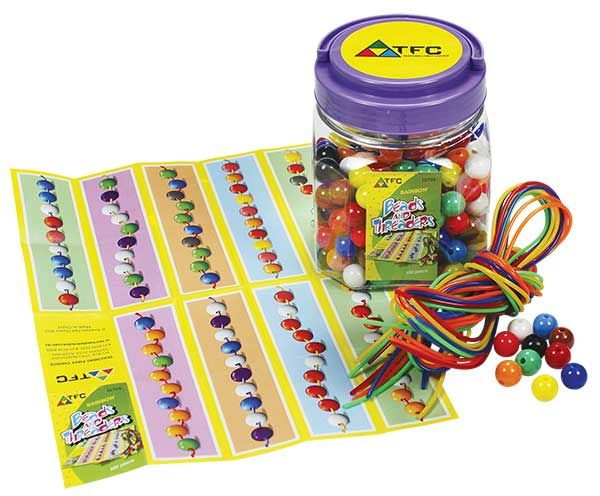 10 robust 1m long plastic threaders make it simple to thread these 15mm diameter, brightly coloured beads. Also included is a coloured booklet with 19 activities to give practice in sorting and recognising patterns.