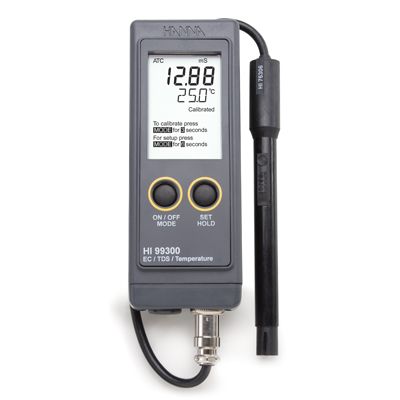 HI 99300 is a portable, EC/TDS/temperature meter. HI 99300 measures low range conductivity in µS/cm and TDS in ppm. It is housed in a case rated for IP67 conditions.
