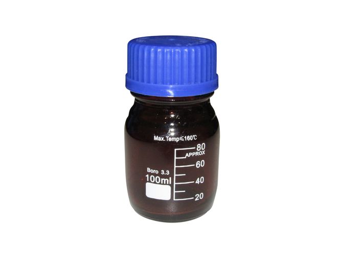 Reagent bottles, also known as media bottles or graduated bottles, are containers made of glass, plastic, borosilicate or related substances, and topped by special caps or stoppers and are intended to contain chemicals in liquid or powder form for laboratories and stored in cabinets or on shelves.