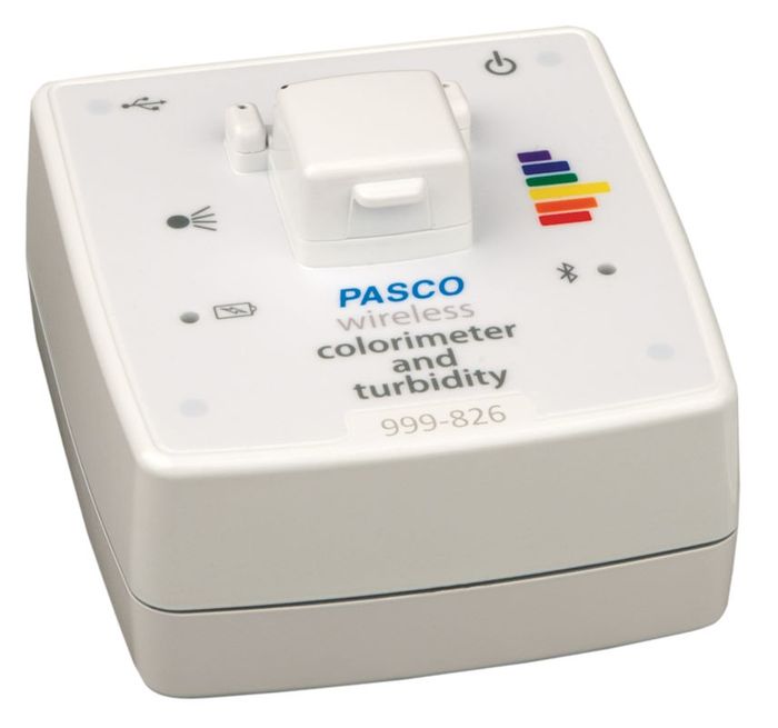 The Wireless Colorimeter & Turbidity Sensor simultaneously measures the absorbance and transmittance of six different wavelengths. The sensor can be used to study Beer's Law (absorbance vs. concentration), enzyme activity, photosynthesis, and the rates of chemical reactions (absorbance vs. time). After a simple calibration, students can quickly begin viewing live measurements as they materialize across the visible spectrum at 650 nm (red), 600 nm (orange), 570 nm (yellow), 550 nm (green), 500 nm (blue), and 450 nm (violet).