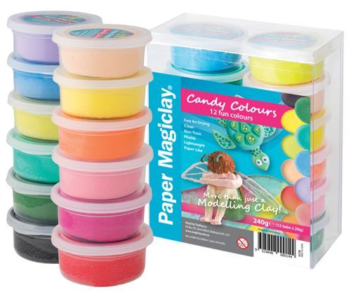 Paper Magiclay 240g Candy Colours is a lightweight, soft and elastic modelling clay compound that air dries in hours. Once dry the clay creates a paper-like texture and is extremely light. Wrap unused portions with plastic wrap or put in an airtight container to avoid clay from drying out.
