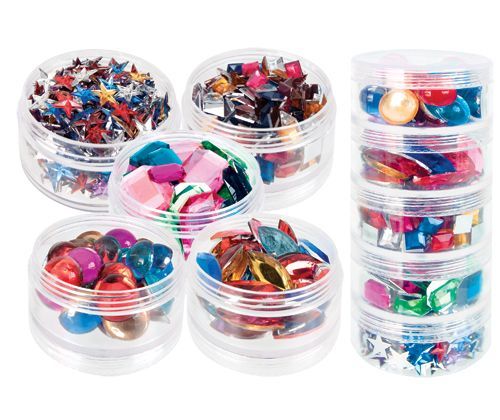 The perfect jewel selection for your classroom. Containing an assortment of shapes in bright colours, these jewels are ideal for collage work, craft projects, costumes, and decorative jewellery. Use Craft Glue or Supertac for a firm bond. Dimensions vary, 7mm-20mm.