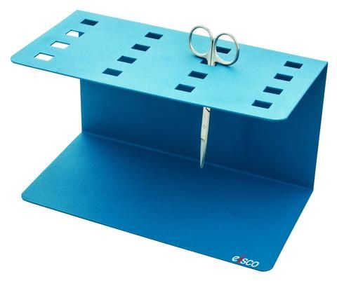 Takes upto 6” long forceps commonly used in dissecting labs. Manufactured in steel, powder coated and holds 16 Scissors.