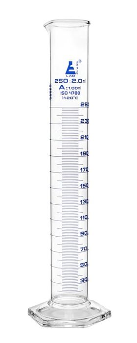 - Measuring cylinder glass 250ml Cl.A blue