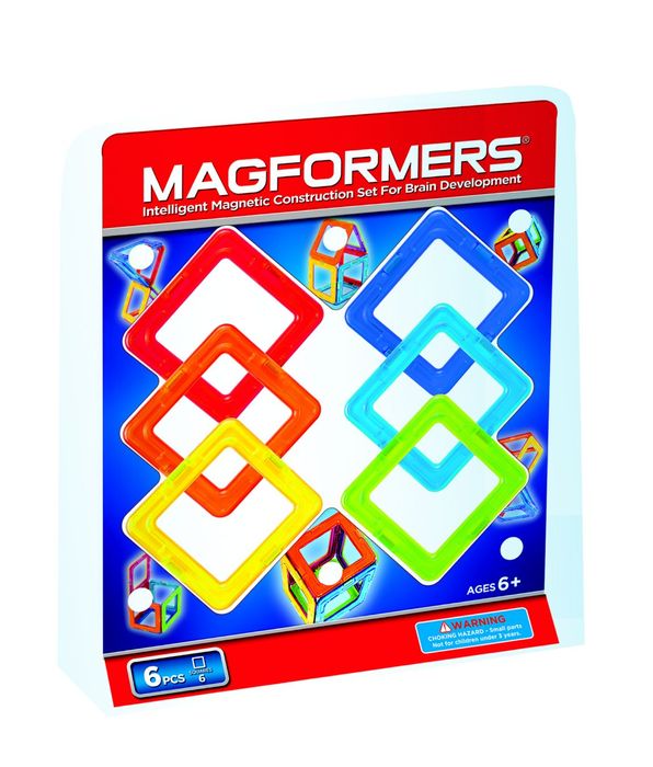 | Magformers - intelligent magnetic construction set. Set of 6 squares click together to construct different shapes. Great set to add to your existing Magformers. |