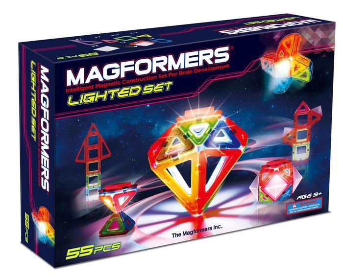 This set has 55 pieces and includes an LED lighted box that illuminates the colourful Magformers pieces, making your child’s creative structures even more brilliant!