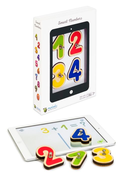 | These 10 wooden connected digits interact with tablets and 3 free educational apps to learn to count and calculate. Child-proof: no Wi-Fi, no Bluetooth, no battery required. Gentle to the tablet screen. Compatible with all iPads & selected Android tablets. Includes English, Spanish, French, German and more |