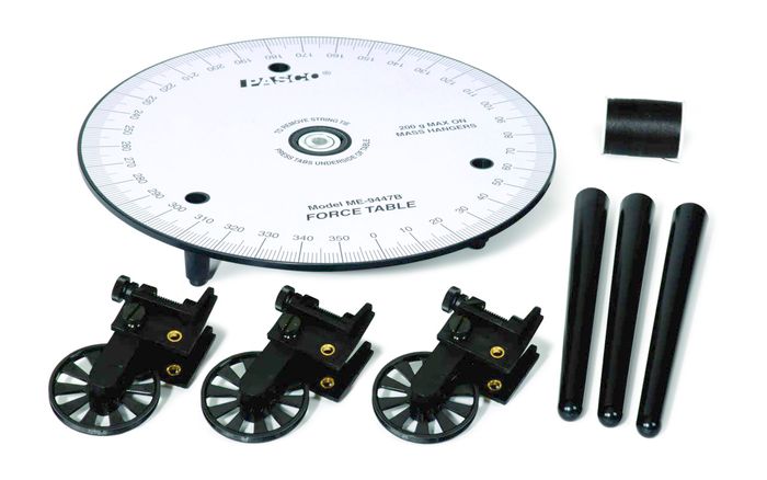 The Super Pulley Force Table facilitates the study of summed vector forces and allows students to resolve vectors into their components.