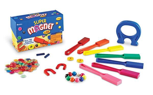Complete classroom set for 25 students. Includes 100 x magnetic chips, 100 x magnetic paper clips, 10 x marbles, 7 x magnetic wands, 2 x metal ring magnets, 2 x mini metal horseshoe magnets, 1 x plastic horseshoe magnet(12.7cm), 2 x metal bar magnets, teachers guide and durable storage box. Ages 6 to 11.