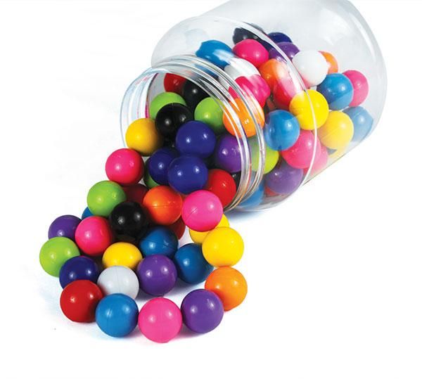 Plastic covered magnetic balls in assorted bright colours