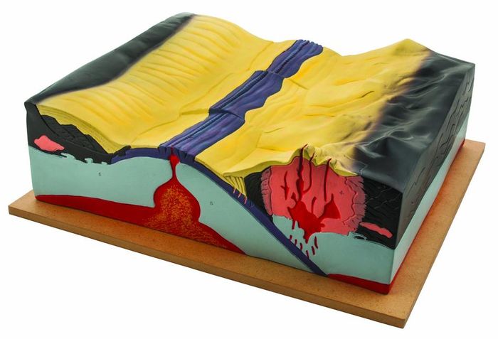 Provide your students with an innovative look at plate tectonics with this hand-painted plastic model, showing detailed representations of the earth layers. Both active and passive margins are shown addition to oceanic ridges with rift valley, benjoff plane, oceanic trenches, continental shelf and slopes. Use this artistic re-creation to communicate the importance of plate movements in relation to volcanism and seismicity. Oceanic floor spreading is also well characterized to illustrate the development of a rift into a new structure.