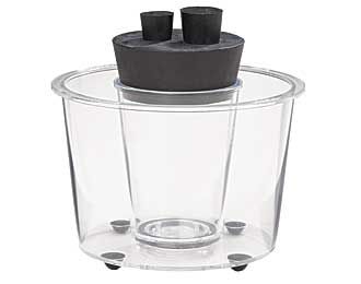 The photosynthesis tank has two concentric Plexiglas chambers. This unique design allows students to control the environment without interfering with the measurements. In addition, the rubber stopper seals the inner environment so oxygen is not exchanged between the atmosphere and the sample. Two back-bored openings in the stopper form a tight seal with the sensors, but also allow for easy insertion and removal.
