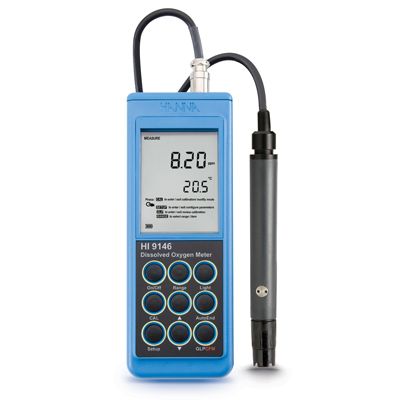 HI?9146 is a water-resistant, dissolved oxygen meter that measures up to 300% saturation or 45 ppm (mg/L) with temperature compensation and automatic calibration. It has been developed for DO and temperature measurement in water, wastewater, and applications such as fish farming. This instrument also allows altitude compensation up to 4000 m and the ppm and % saturation are both compensated for changes in solubility of oxygen in water and for permeability of the membrane as well as the temperature effect. The HANNA HI?76408 DO probe is rugged and perfect for both laboratory and field applications. Calibration is fast and simple, and measurements are temperature compensated. The sensitive PTFE membrane can be changed in a few seconds.