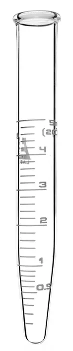 5 ml, Borosilicate glass, graduated. Conical, height 100mm, OD 13mm