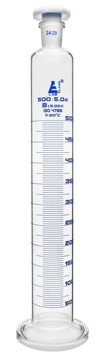 - Measuring cylinder glass 500ml stoppered