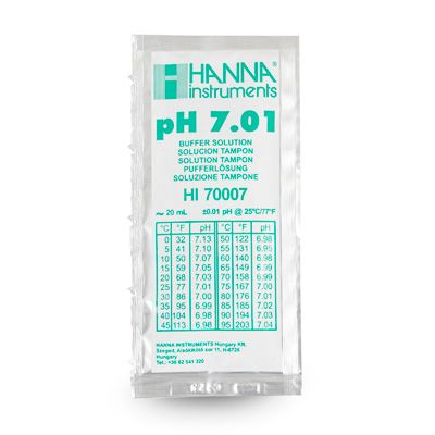 pH 7.01 is the most widely used among all buffer solutions. For this reason we have prepared it in a wider variety of sizes to meet every application need. Whether you prefer to have your solutions in 20 mL sachets or if you need larger quantities, HANNA® will satisfy all your needs. HANNA® pH buffer solutions are NIST standardized reference solutions. For the pH standard most widely used for calibration, HANNA® also offers a wide range of buffer solutions in sachets, where the solutions are always fresh and easy-to-use for field applications. HI 50007, HI 60007, HI 70007C, HI 77700C, HI 7007L/C & HI 8007L/C are supplied complete with certificate of analysis.