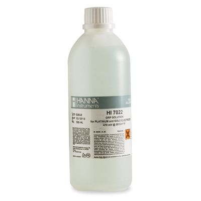 ORP standard solutions allow you to test the precision of ORP electrodes. For example, by immersing the electrode in HI 7022 solution, you should read 470 mV @ 25°C/77°F