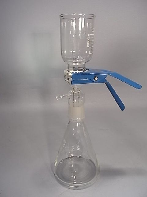 - Vacuum filtration assembly with sintered glass support (holds up to 47mm diameter filter)
