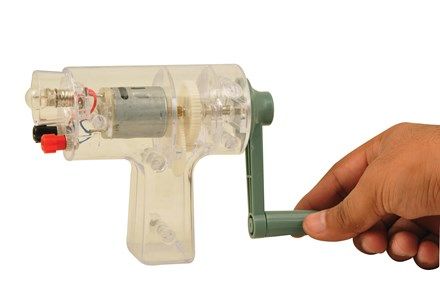 Hand Generator with Light and Banana Terminals, up to 12V DC Hand crank generator up to 12V DC Light bulb to show power generation Banana plug terminals In