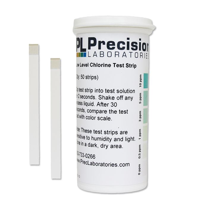 The Low Level Chlorine test strip measures residual chlorine from 0-10ppm in increments of 0-0.5-1-3-5-10 in just seconds. The Low Level Chlorine test strip is ideal for detecting trace levels of free chlorine, such as meeting USDA or California organic certification regulations. It is accurate within 5-10% of reading the color scale. The strip can also be used to test for chlorine in drinking water if this is a concern.