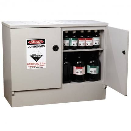 - Dual compartment cabinets allow acids and bases to be conveniently stored in one cabinet