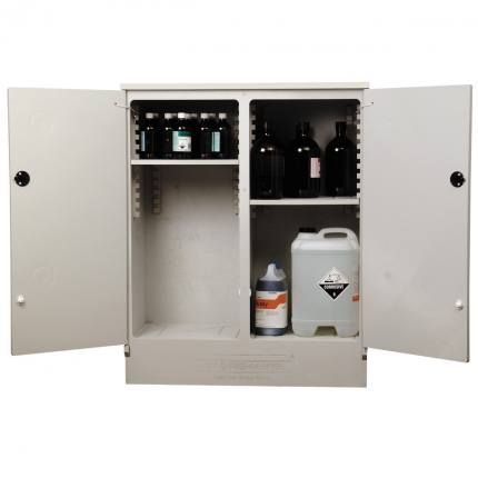 - Dual compartment cabinets allow acids and bases to be conveniently stored in one cabinet