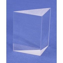 For measuring critical angle and observing total internal reflection. Made of clear optical glass. Angles 90 degrees, 45 degrees, 45 degrees. Approximate dimensions are 1-3/8" face x 2" length (35x50mm).