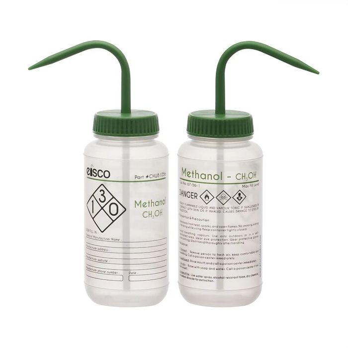 Each bottle is labeled for Methanol featuring chemical information as well as hazard, safety, and first aid precautionary statements. Wide mouth for easy refilling. Green color coded leak proof cap with built in nozzle included. Self venting design eliminates leaks & dripping. The low density polyethylene plastic is very responsive, with smooth bounce back that won't get stiff over time. Easy to control squeeze for dispensing.