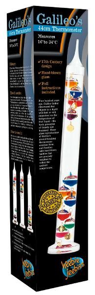 There are 3 sizes of Galileo Thermometer available. This one is 44cm tall with 10 glass balls (temperature range 16°C to 34°C). This is the perfect gift for mum, dad, or any nerdy adult as it is a beautiful piece to put on display.