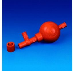 A moulded rubber bulb, with three glass ball valves which can be controlled by finger pressure. There are no metal parts to corrode and the filler can be used with all liquids except those that attack rubber. Can be used on bulb or cylindrical pipettes of different capacity. Complete with adapter for pipettes with capacities more than 20 ml.