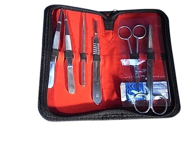 All instruments are stainless steel (except the scalpel blade) - contains 1x of the followiong: