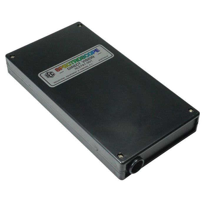 The IEC compact Direct Vision Spectroscope is a very useful device for measuring the wavelength of light. An adjustable slit allows the light to enter the black chamber and the viewing eyepiece carries a 600 line/mm grating. The eye sees the incoming light split into its colours or wavelengths that appear to be deflected to the right hand side. The coloured bands appear over a scale calibrated in nanometres (nm) with each digit on the scale representing 100nm. A useful PDF file introduces the principles and explains Angstrom units, nanometres, the spectrum and much more.