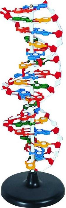 Allows you to assemble the model and then twist it into a double helix, instead of building it around a centre post. Each of the four nitrogenous bases comes in a different unlabelled colour so, students can design their own base pair coding. The model is removable from the plastic base and can be extended to its full length to demonstrate strand separation.