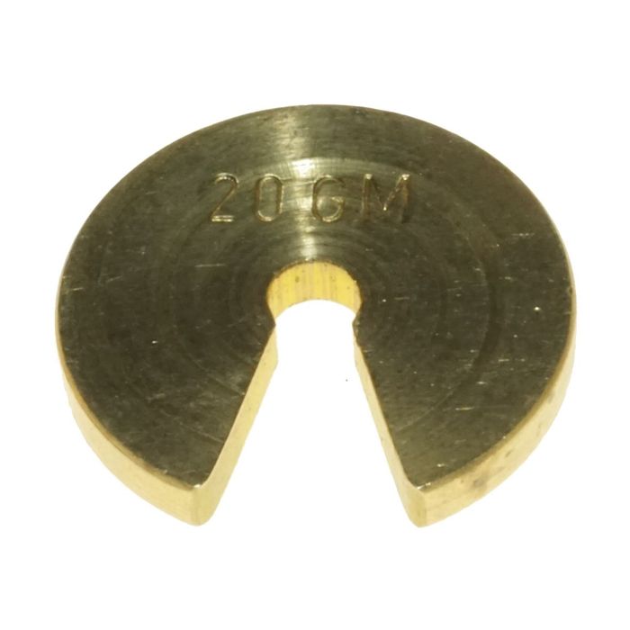 Individual 20g slotted weight suitable for the standard IEC slotted weight carrier. Accuracy better than 1%