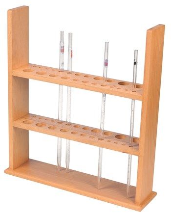 Wooden Pipette Stand, Holds 24 pipettes Vertically Wooden and polished, to hold vertically pipettes of assorted sizes. Height 41 cm width 36 cm and depth 11 cm.