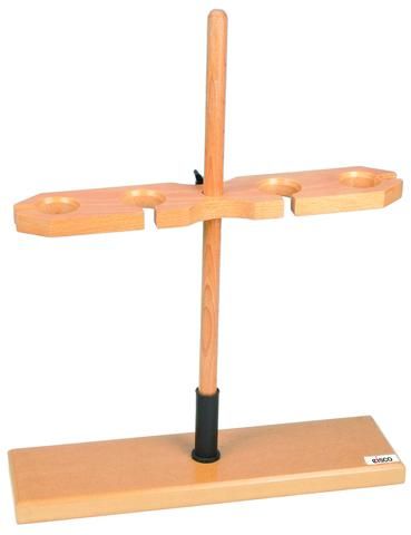 Wooden, polished, with clamping screws. Rods are approx. 460 x 16 mm.