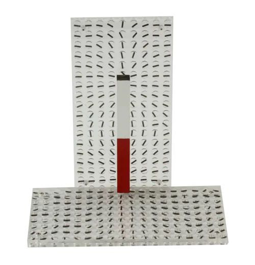 Set of four plates with small iron pins for the demonstration of magnetic field lines.