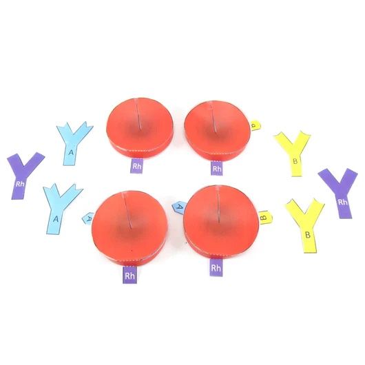 First, your students make red blood cells and antibodies out of the colourful parts. Then they use their 3D models to look at the ABO blood groups (covers A, B, AB, and O), the Rhesus system and what happens during a blood transfusion. They also look at what types of antibody each blood group produces.