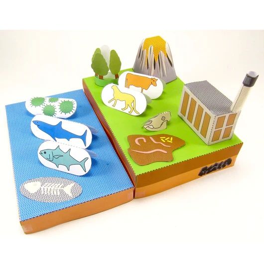 Your students will enjoy learning about the carbon cycle with our interactive model. First, they make their model using the colourful parts. Then, they use it to look at the features of the carbon cycle such as carbon stores and transfers.