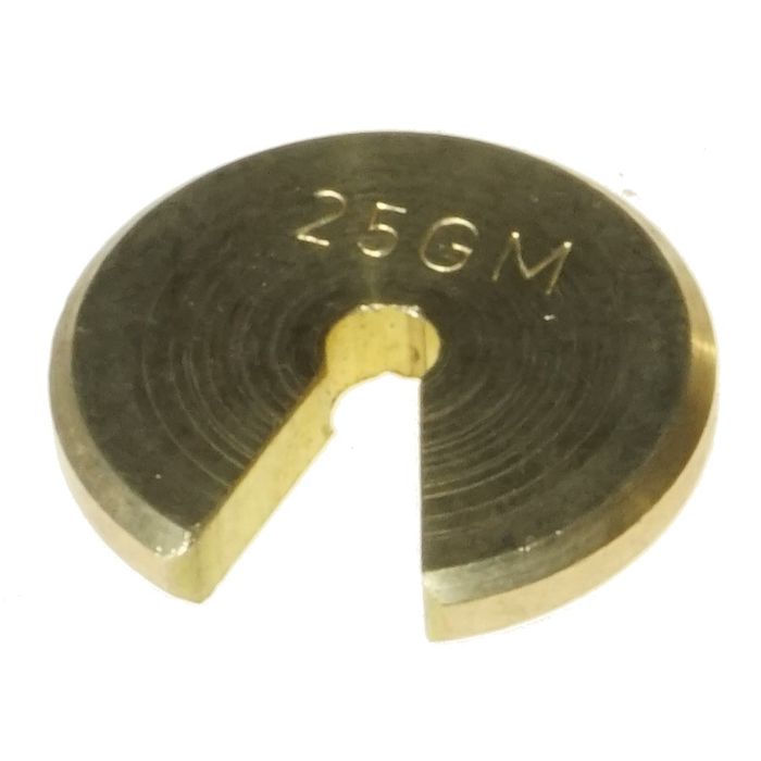Individual 25g slotted weight suitable for the standard IEC slotted weight carrier. Accuracy better than 1%