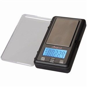 Extremely accurate mini scale suitable for a variety of applications. Measuring up to 200g, the large LCD is backlit and has a 100g calibration weight included. Resolution is .01g and it weighs in grams, carats, ounces and pennyweight.