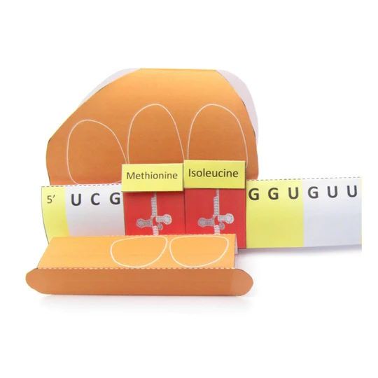 Ribosomes are the factory workers of the cell! Your students will build their own model ribosome out of paper that they can hold in the palm of their hand. They will then use the model to make a peptide from five amino acids using transfer RNAs (tRNA) following a messenger RNA (mRNA) sequence.