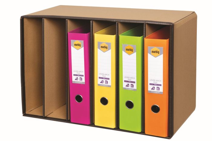 6 compartments which can be used to store files and binders or turned on its side can be used as shelves. F/C capacity. Australian made from 100% recycled board and is 100% recyclable. 570W x 295D x 380Hmm.