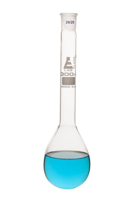 300ml capacity. Socket size: 24/29. Long neck, round base.
