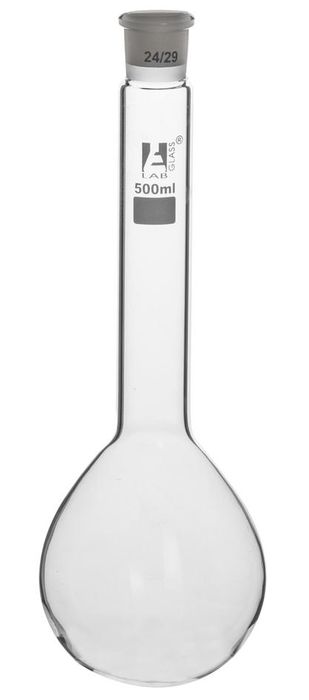 500ml capacity. Socket size: 24/29. Long neck, round base.