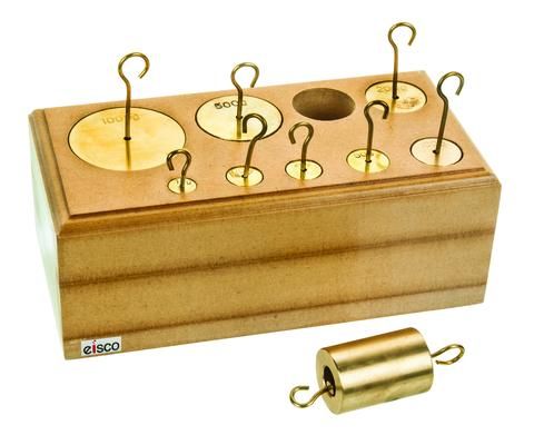 A classic tool used in any lab or classroom. This 9 piece brass weight set with wooden block holder will last for decades of use due to its high integrity instruction and quality brass material. Set includes: 1000g, 500g, (2) 200g, 100g, 50g, (2) 20g, and 10g weights.