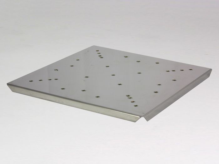 Stainless steel clips are available to suit conical flasks of various sizes. The clips are secured to this mounting tray by screws and can be easily removed or re-arranged. Different sized clips can be used at the same time when required.