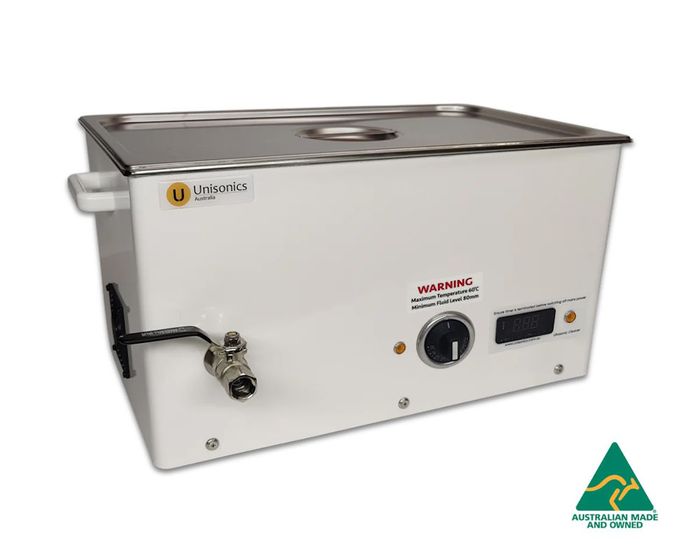 The Unisonics FXP range is a single chamber device used to clean instruments and other hardware with ultrasonic energy in a mixed water/chemical solution. Resin coated transducers and circuit board for moisture protection.