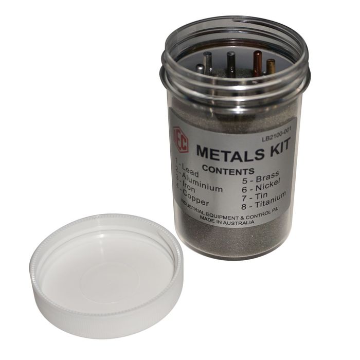 The Metals Kit is a simple set of 8x different metals for students to touch, feel and recognise. They are in the form of 50mm long x 3mm diameter rods in a small kit. The metals are: Brass, copper, Lead, Aluminium, Iron, Nickel, Tin, Titanium.
